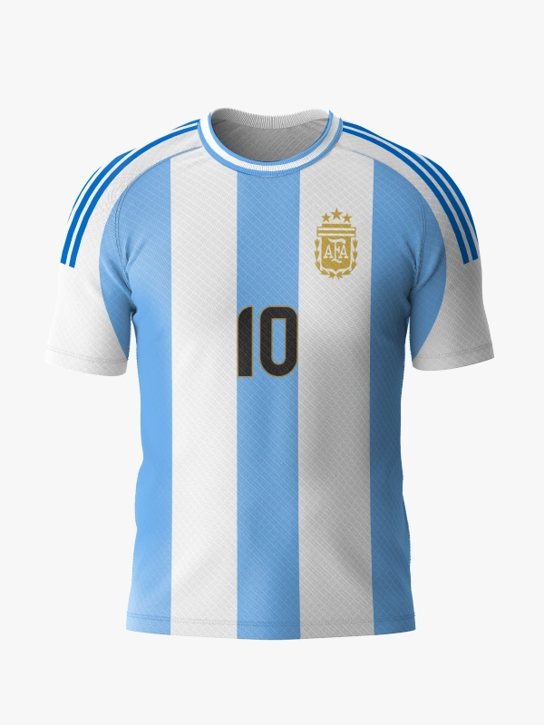 Celebrate victory with the Argentina Soccer Jersey FIFA World Cup 2022. Breathable, lightweight, and iconic with sky blue and white stripes — perfect for fans and players honoring the world champions.