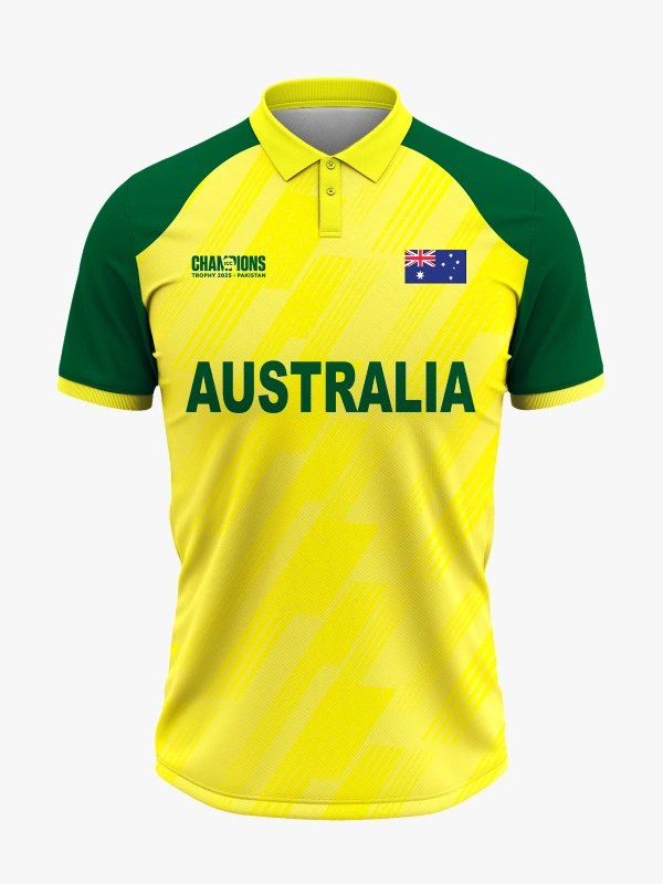 Show your Aussie pride with the Australia Champions Trophy Cricket Jersey 2025. Premium breathable fabric, authentic team design, and custom printing available.