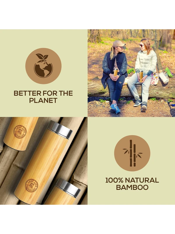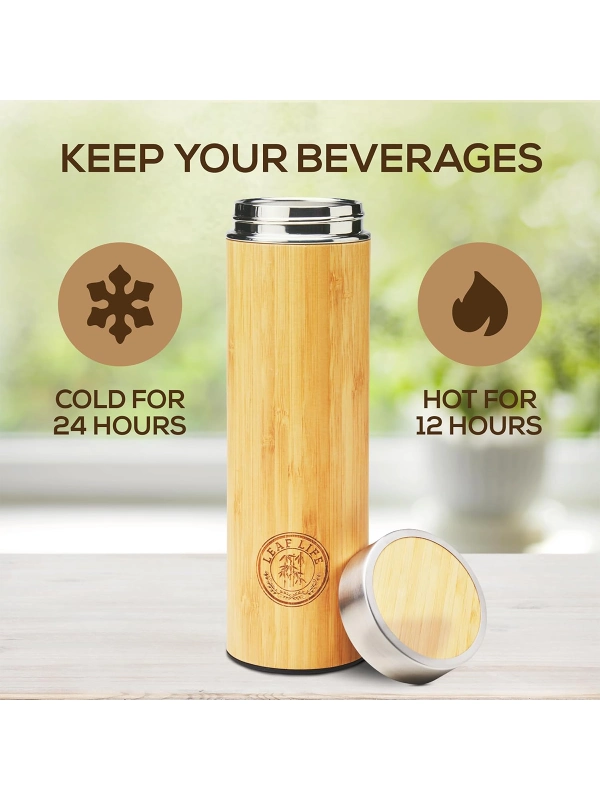 Elevate your tea-drinking experience with the LeafLife Premium Bamboo Tea Bottle. Crafted from 100% organic bamboo and high-quality stainless steel, this elegant tea tumbler is designed for tea lovers, coffee enthusiasts, and eco-conscious individuals. Brew your favorite loose-leaf teas, herbal infusions, or fruit-infused drinks anytime, anywhere—hot or cold.