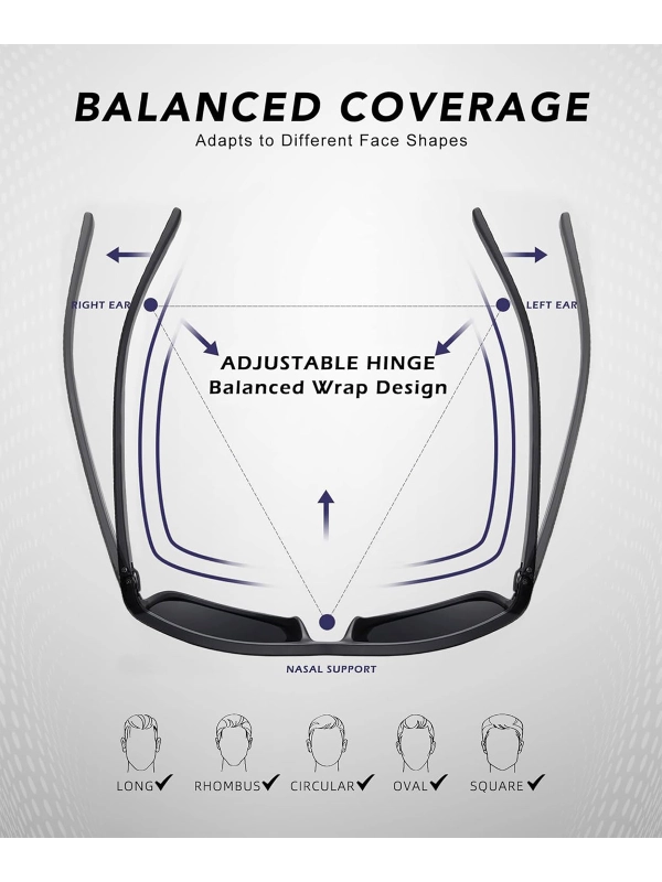 Crafted with top-grade materials, these sunglasses are built to withstand daily wear, outdoor heat, and active use. The spring hinges ensure flexibility, allowing the frame to adjust comfortably to different face shapes without slipping.