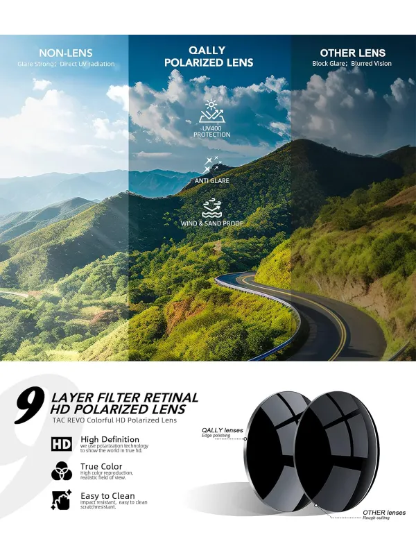 Upgrade your outdoor experience with the QALLY Polarized Sunglasses for Men, engineered for clarity, comfort, and long-lasting performance. Featuring advanced UV400 polarized lenses, a durable frame, and a lightweight fit, these men’s sunglasses are perfect for driving, fishing, golfing, traveling, or any bright outdoor setting. Whether you’re exploring the city or hitting the road, QALLY ensures your eyes stay protected and your style stays sharp.